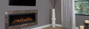 Callaway 50 Linear Fireplace with many different styling options and comes with an optional Komfort Zone Kit. The Komfort Zone Kit gives you the ability to hang your TV safely above your fireplace and bring combustibles right up to the finishing edge.